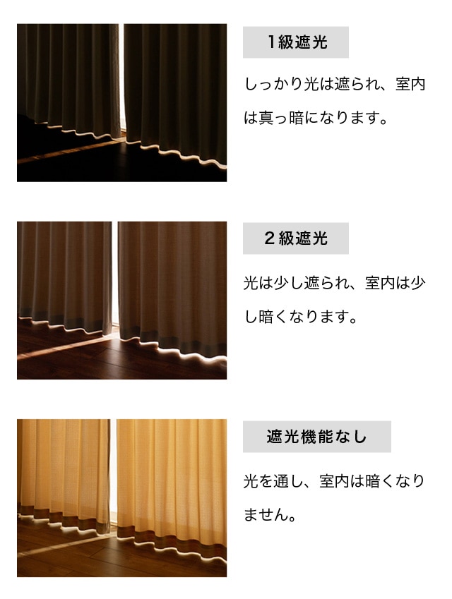 ただし、同商品内でもカラーによって遮光の等級が異なる場合がありますので、ご注意ください。